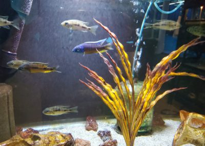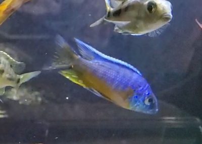 The Blue Gold Cichlid is a rare and beautiful Lake Malawi Haplochromine. This Cichlid would do well with other Lake Malawi Peacocks and Haps.