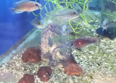 The Hippo Point Salmon is a beautiful cichlid with a unique salmon color running through the majority of its body. Like most Victorian species, females tend to be quite bland and the male gets all the beautiful colors. This is a CARES for fish listed species as CVU – Vulnerable Species facing a high risk of extinction in the wild in the medium term future. These fish stay smaller then most African cichlids with males maxing at about 3.5 to 4 inches while females stay smaller at around 2 to 2.5 inches.